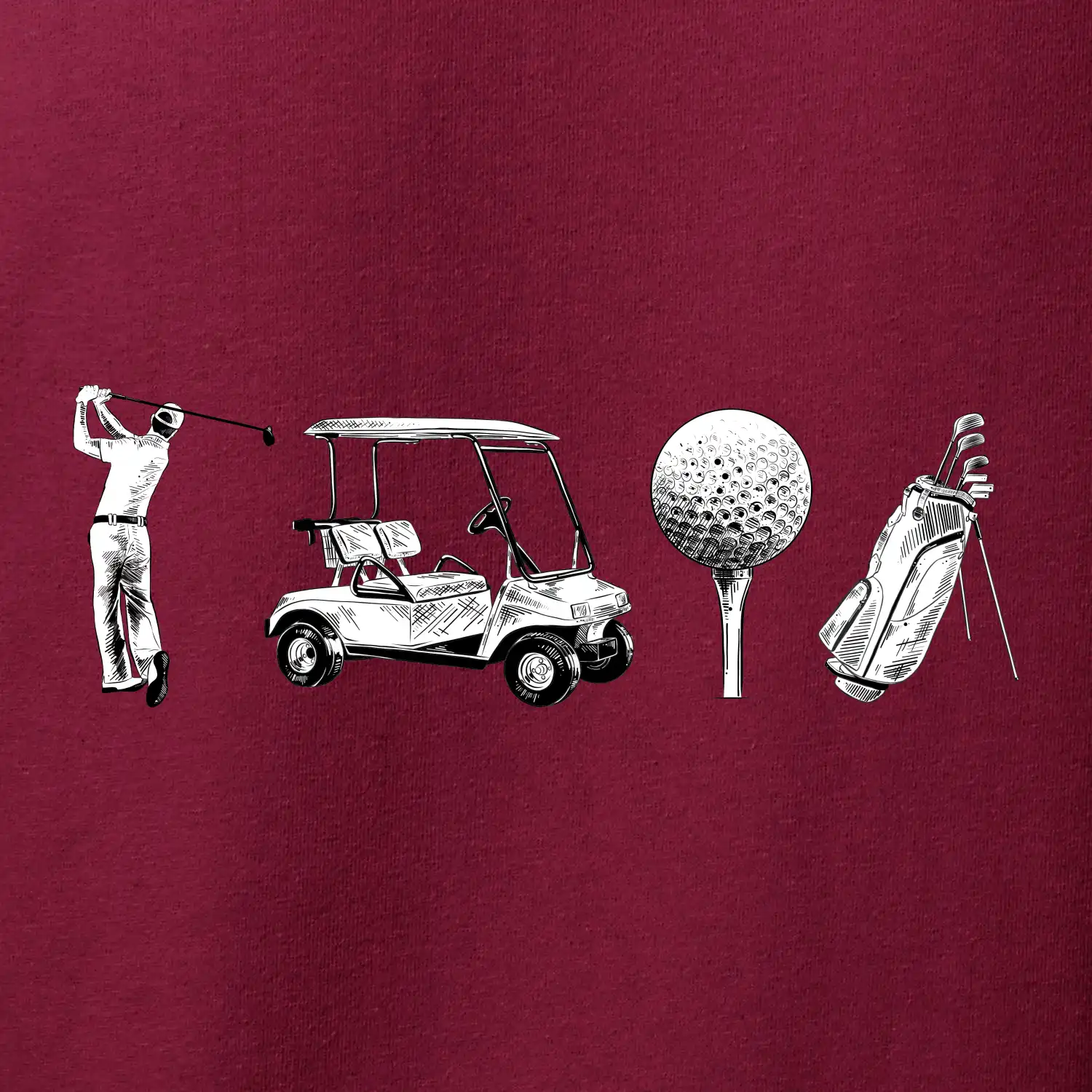 Triko pro sportovce, kteří mají rádi golf. Každý správný sportovec golfista by měl mít triko, kde je golfový míček, golfový vozík a bag s golfovými holemi. Golfové triko je vhodný dárek pro golfistu. Vem golfový vozík a ukaž tímhle golfovým trikem, že máš rád golf!