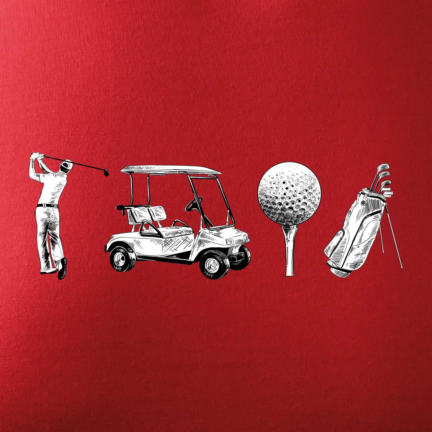 Triko pro sportovce, kteří mají rádi golf. Každý správný sportovec golfista by měl mít triko, kde je golfový míček, golfový vozík a bag s golfovými holemi. Golfové triko je vhodný dárek pro golfistu. Vem golfový vozík a ukaž tímhle golfovým trikem, že máš rád golf!