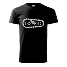 Triko pro cyklistu, na kterém je řetěz a kolo, které tvoří nápis bůh by měl potěšit všechny cyklisty, kteří jezdí srdcem. Cyklo triko by měl mít každý správný sportovec cyklista. Cyklistické triko ukáže, jak máte rádi sport, zejména kolo. Vhodný dárek pro cyklistu. S tímhle trikem z tebe bude cyklistický bůh!