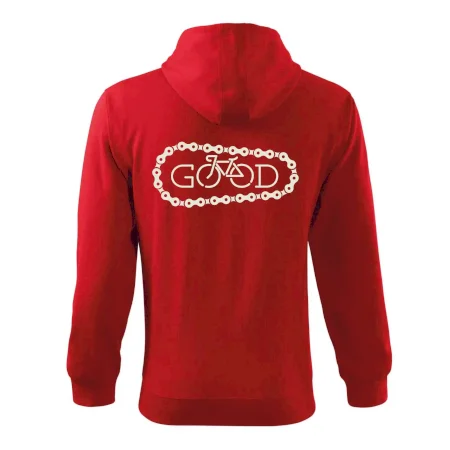Triko pro cyklistu, na kterém je řetěz a kolo, které tvoří nápis bůh by měl potěšit všechny cyklisty, kteří jezdí srdcem. Cyklo triko by měl mít každý správný sportovec cyklista. Cyklistické triko ukáže, jak máte rádi sport, zejména kolo. Vhodný dárek pro cyklistu. S tímhle trikem z tebe bude cyklistický bůh!