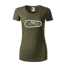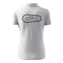 Triko pro cyklistu, na kterém je řetěz a kolo, které tvoří nápis bůh by měl potěšit všechny cyklisty, kteří jezdí srdcem. Cyklo triko by měl mít každý správný sportovec cyklista. Cyklistické triko ukáže, jak máte rádi sport, zejména kolo. Vhodný dárek pro cyklistu. S tímhle trikem z tebe bude cyklistický bůh!
