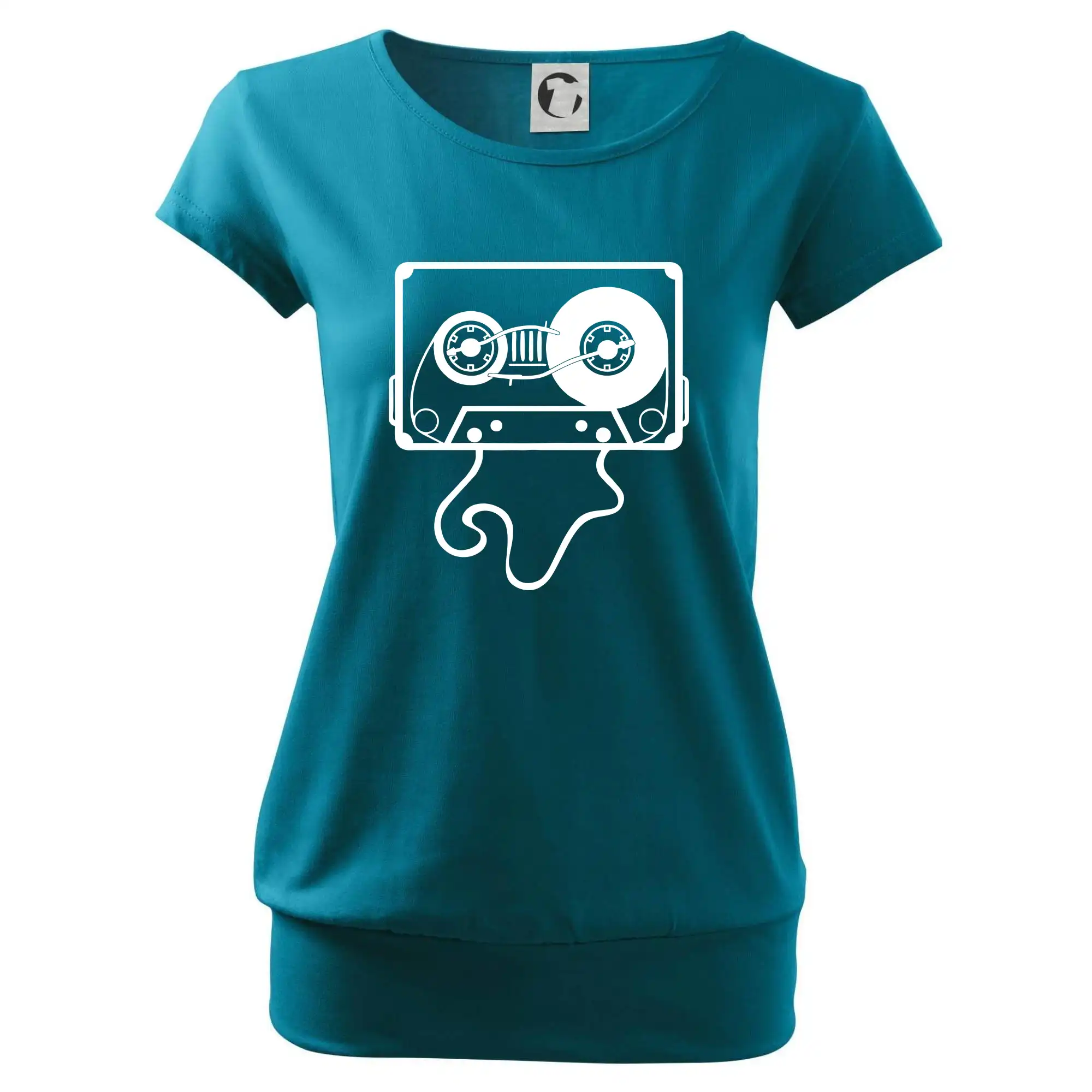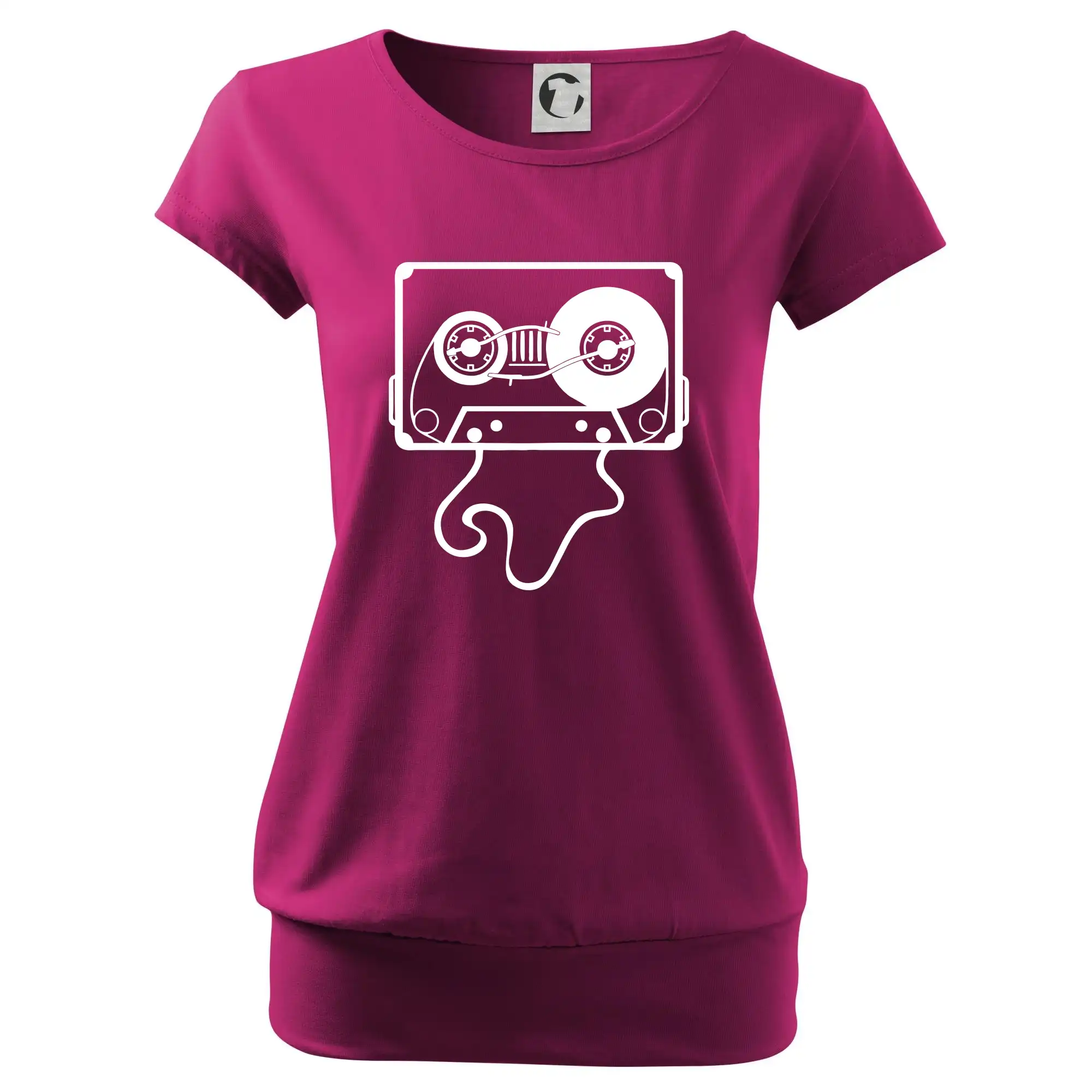 Trendové dámské triko s velmi krátkým rukávem, volnějšího střihu, v dolním kraji všité do širokého lemu. Kulatý průkrčník s úzkým lemem ze shodného materiálu.
