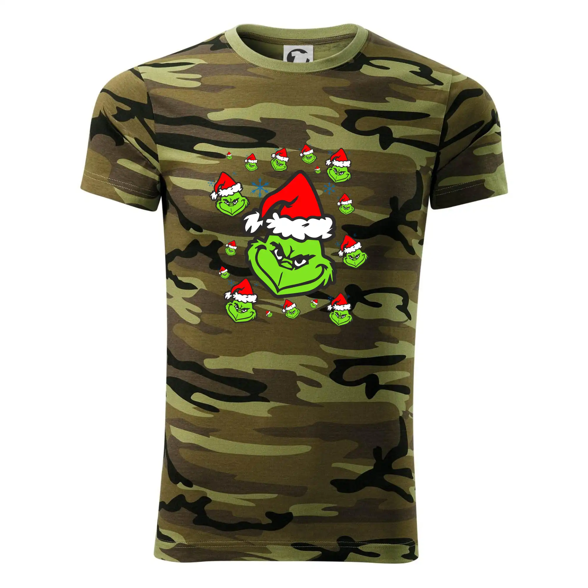 Tričko střední gramáže v barvách camouflage. Střih s bočními švy. Lem průkrčníku ze žebrového úpletu s přídavkem 5 % elastanu. Vnitřní část zadního průkrčníku začištěna páskou v barvě camouflage.