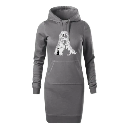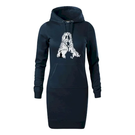 Dámské mikinové šaty MALFINI Snap 419 jsou ideální volbou pro ženy, které hledají pohodlný a stylový kousek pro volný čas nebo každodenní nošení. Lehce vypasovaný střih s bočními švy podtrhuje ženskou siluetu, zatímco kapuce s podšívkou a stahovací šňůrkou dodává ležérní vzhled. Šaty mají délku nad kolena a jsou vybaveny nakládanou kapsou ve stylu „klokanky“. Materiál je měkký a příjemný na dotek díky směsi bavlny a polyesteru s nepočesanou vnitřní stranou.