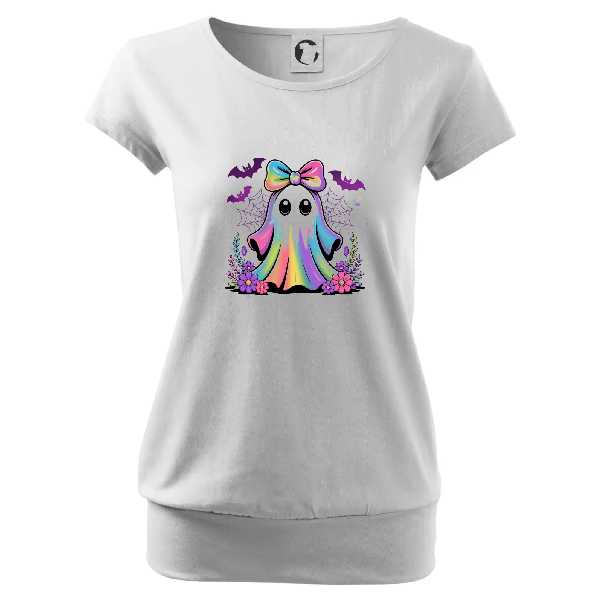 Trendové dámské triko s velmi krátkým rukávem, volnějšího střihu, v dolním kraji všité do širokého lemu. Kulatý průkrčník s úzkým lemem ze shodného materiálu.