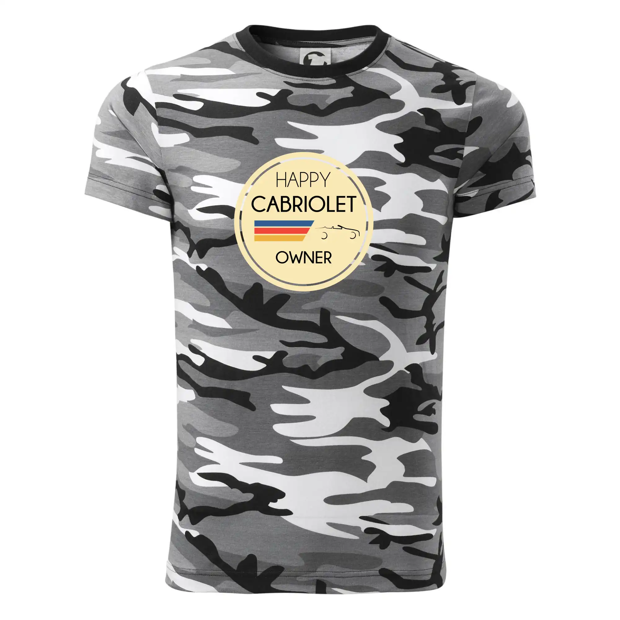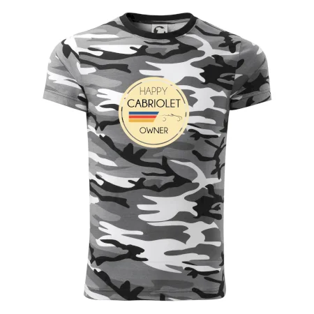 Tričko střední gramáže v barvách camouflage. Střih s bočními švy. Lem průkrčníku ze žebrového úpletu s přídavkem 5 % elastanu. Vnitřní část zadního průkrčníku začištěna páskou v barvě camouflage.