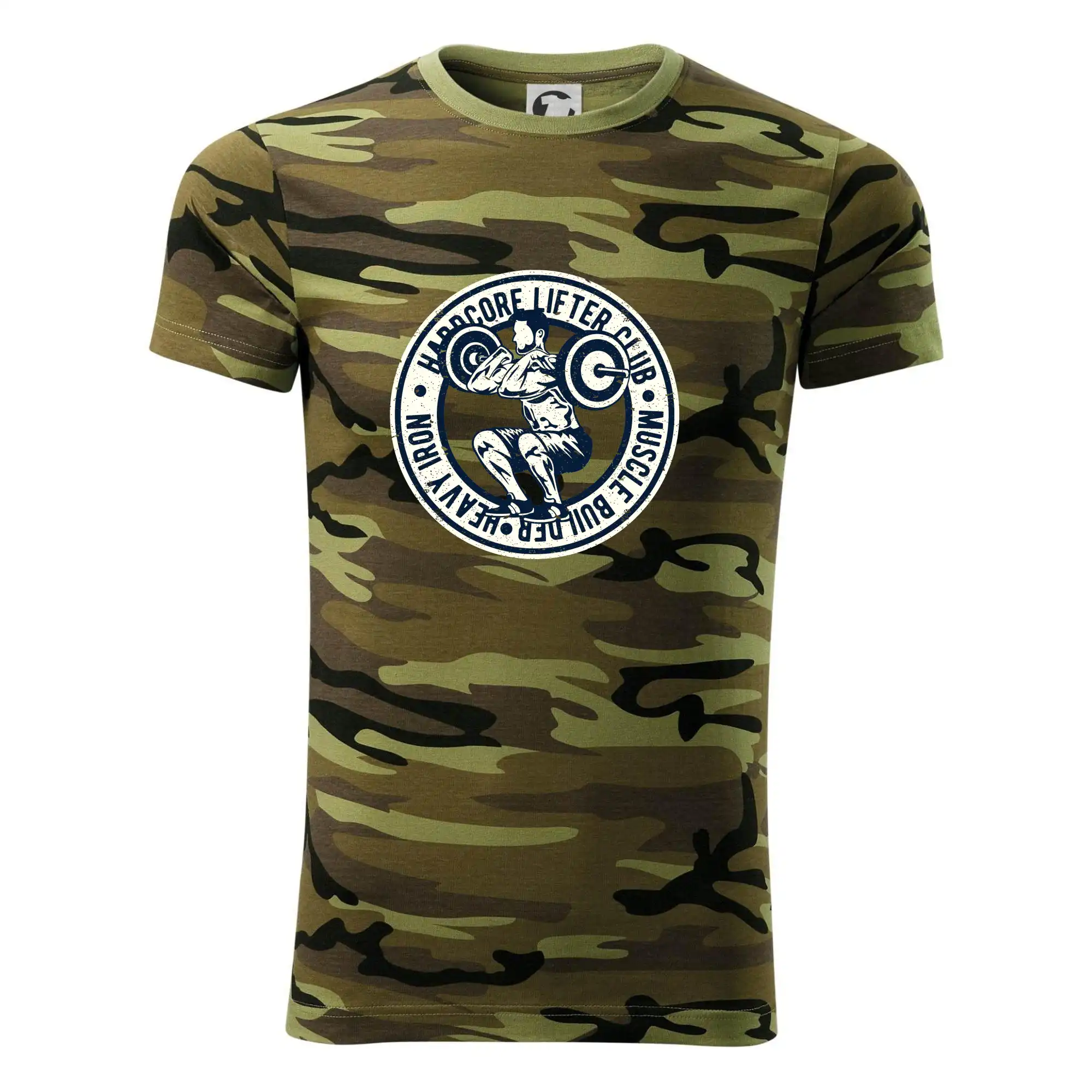 Tričko střední gramáže v barvách camouflage. Střih s bočními švy. Lem průkrčníku ze žebrového úpletu s přídavkem 5 % elastanu. Vnitřní část zadního průkrčníku začištěna páskou v barvě camouflage.
