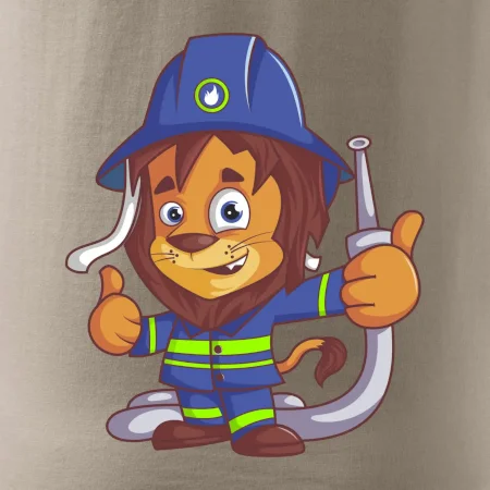 Dětské triko pro hasiče. Pokud jsi malý hasič, pořiď si u nás hasičské triko, na kterém je lev hasič. Dárek pro hasiče, kteří mají rádi zvířata. Hasičský lvíček uhasí každý požár, zvládneš to i ty?