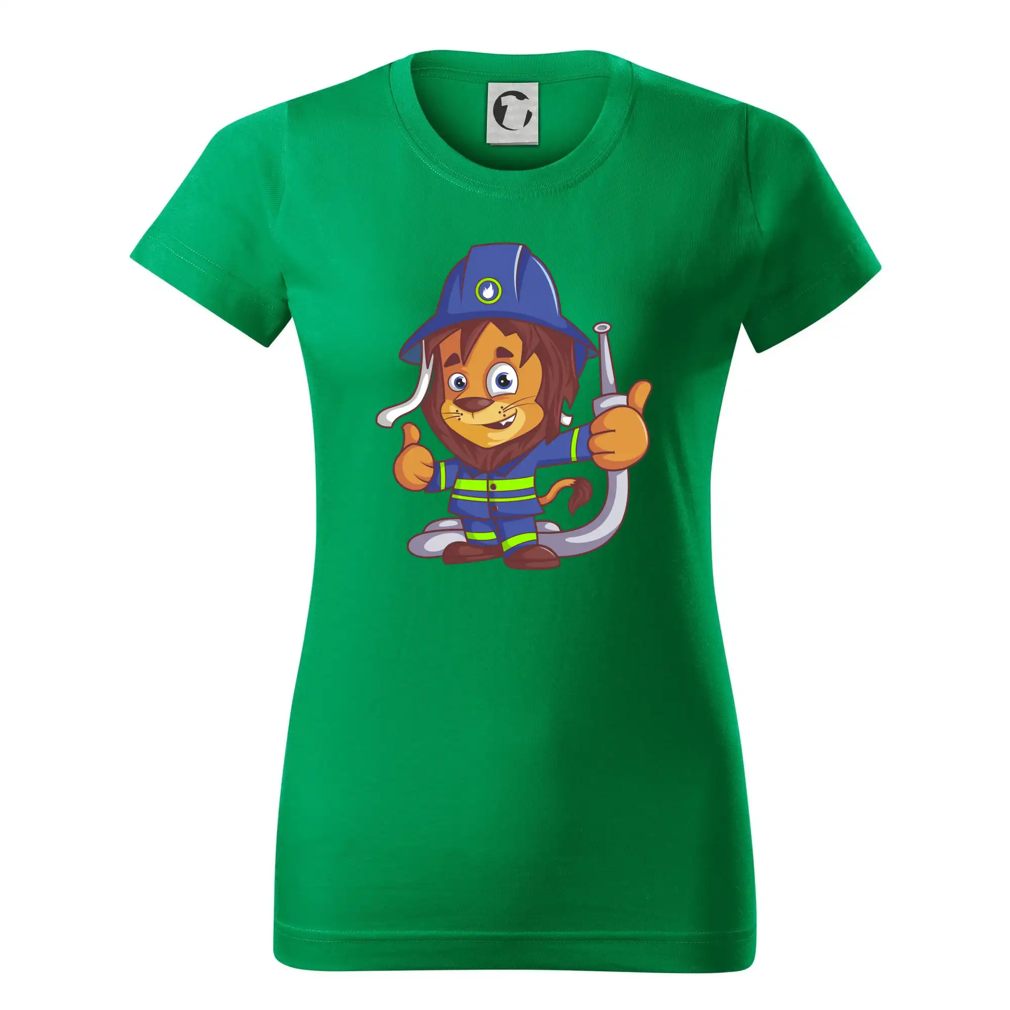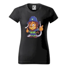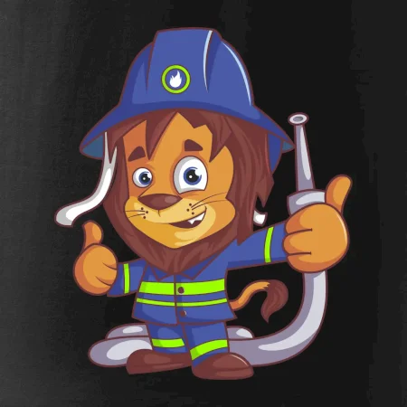 Dětské triko pro hasiče. Pokud jsi malý hasič, pořiď si u nás hasičské triko, na kterém je lev hasič. Dárek pro hasiče, kteří mají rádi zvířata. Hasičský lvíček uhasí každý požár, zvládneš to i ty?