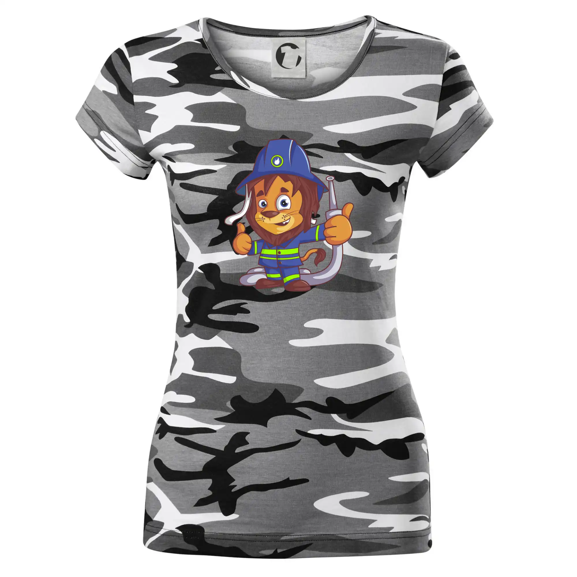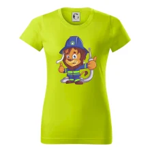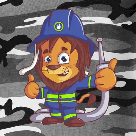 Dětské triko pro hasiče. Pokud jsi malý hasič, pořiď si u nás hasičské triko, na kterém je lev hasič. Dárek pro hasiče, kteří mají rádi zvířata. Hasičský lvíček uhasí každý požár, zvládneš to i ty?