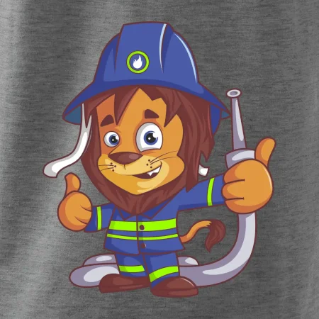 Dětské triko pro hasiče. Pokud jsi malý hasič, pořiď si u nás hasičské triko, na kterém je lev hasič. Dárek pro hasiče, kteří mají rádi zvířata. Hasičský lvíček uhasí každý požár, zvládneš to i ty?