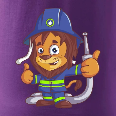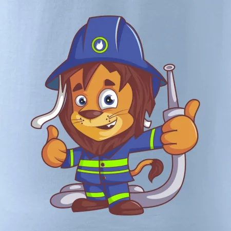 Dětské triko pro hasiče. Pokud jsi malý hasič, pořiď si u nás hasičské triko, na kterém je lev hasič. Dárek pro hasiče, kteří mají rádi zvířata. Hasičský lvíček uhasí každý požár, zvládneš to i ty?