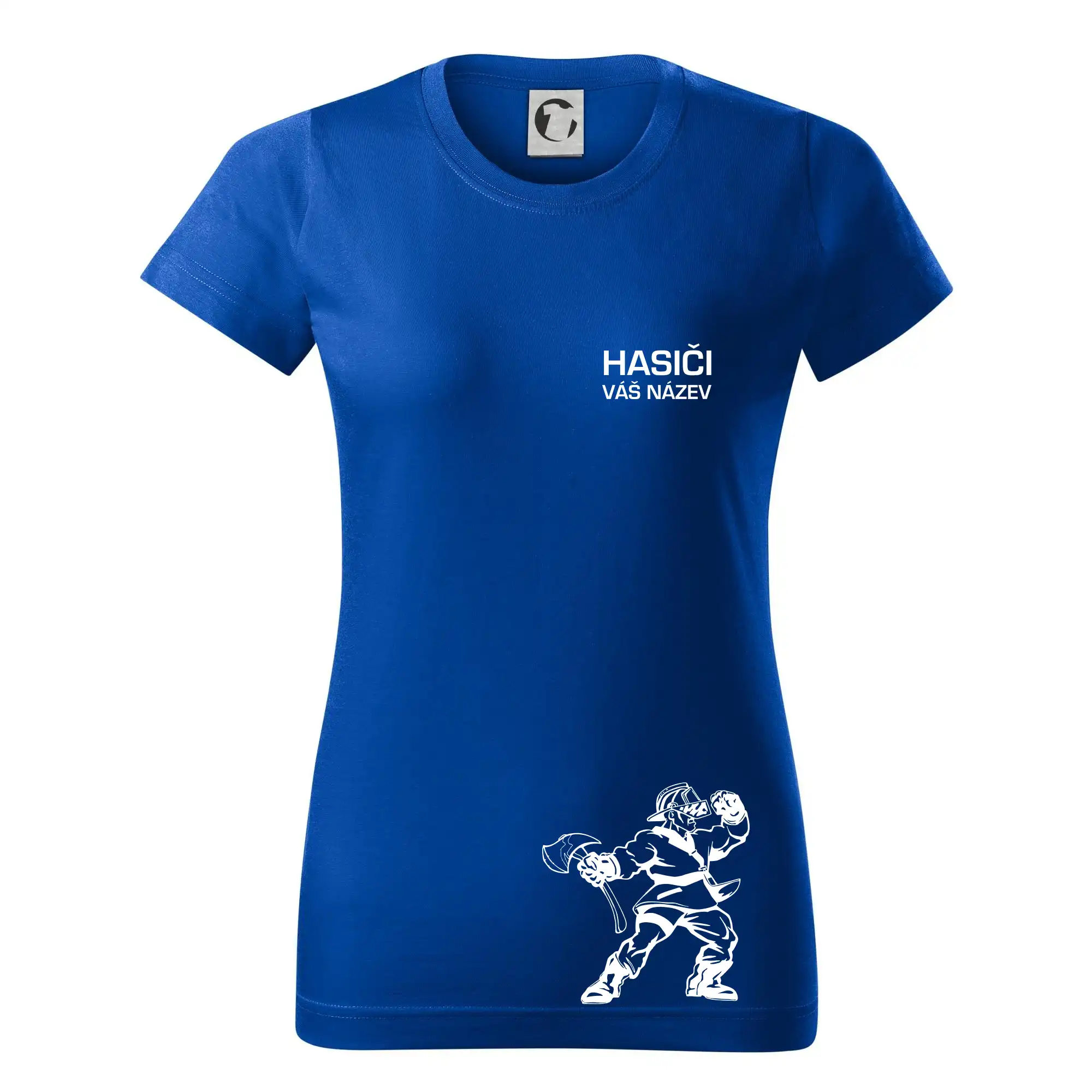 Hledáš super hasičské tričko pro tvůj tým? Co třeba tohle s postavou hasiče doplněné o název tvého týmu.