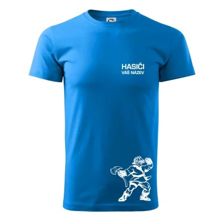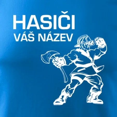 Hledáš super hasičské tričko pro tvůj tým? Co třeba tohle s postavou hasiče doplněné o název tvého týmu.