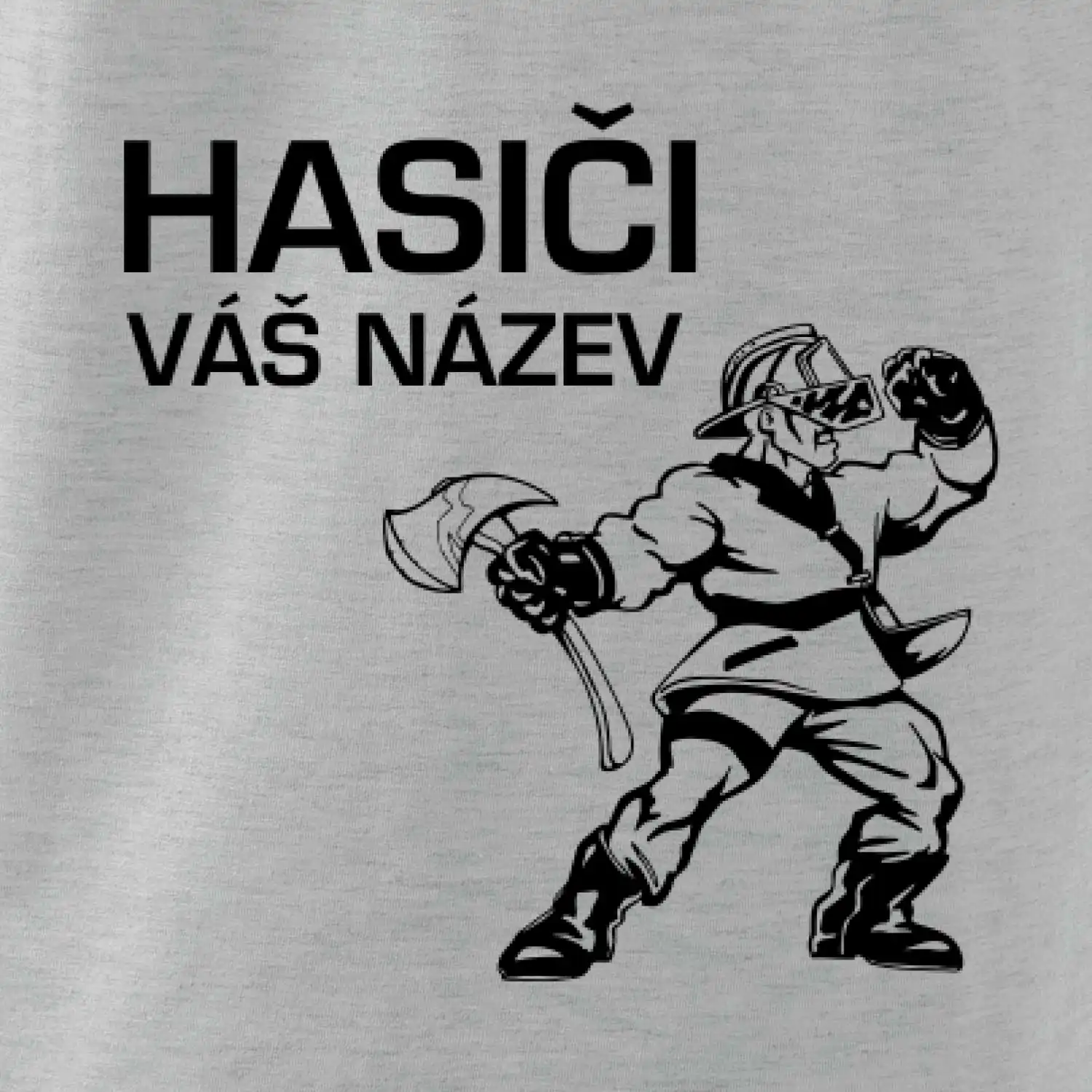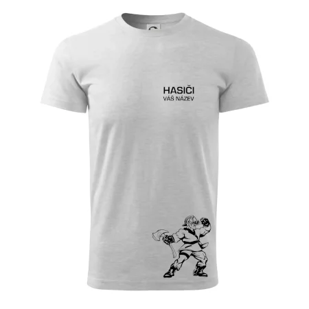 Hledáš super hasičské tričko pro tvůj tým? Co třeba tohle s postavou hasiče doplněné o název tvého týmu.