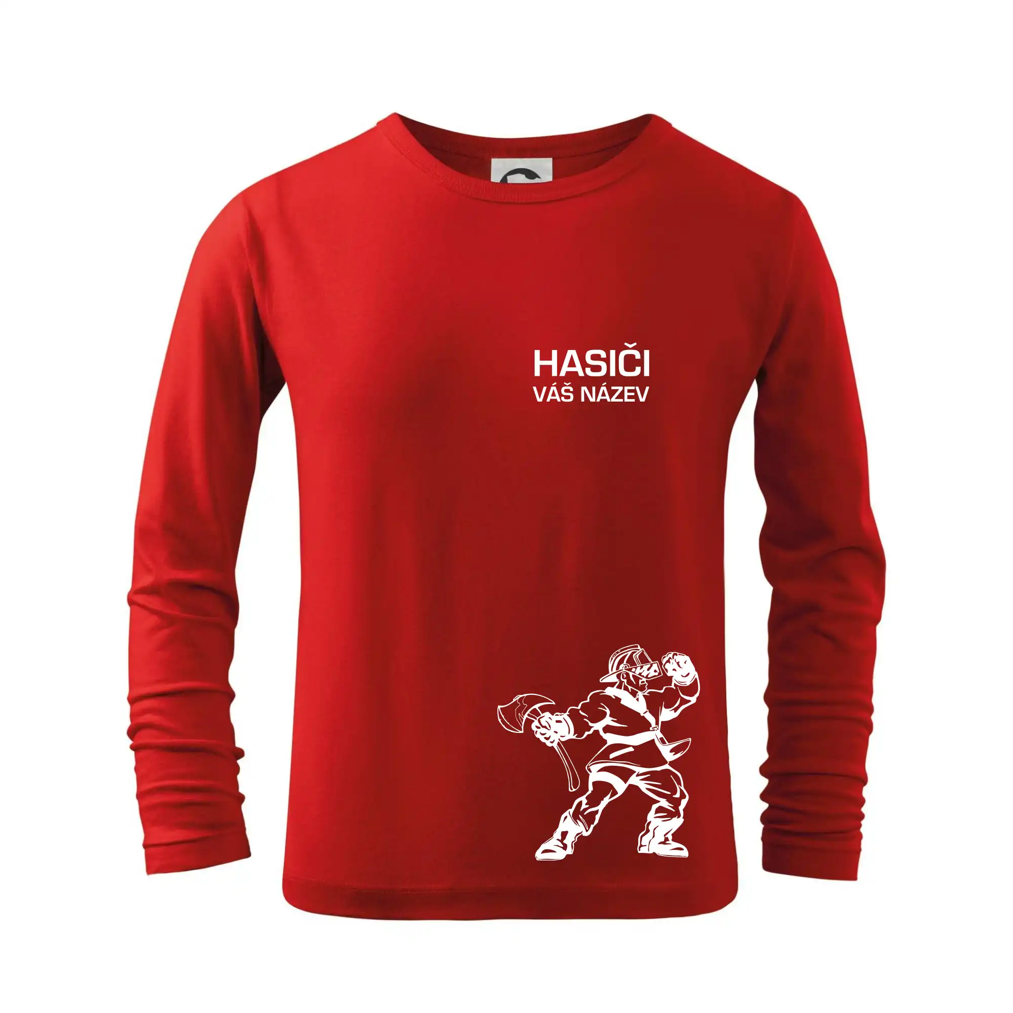 Hledáš super hasičské tričko pro tvůj tým? Co třeba tohle s postavou hasiče doplněné o název tvého týmu.