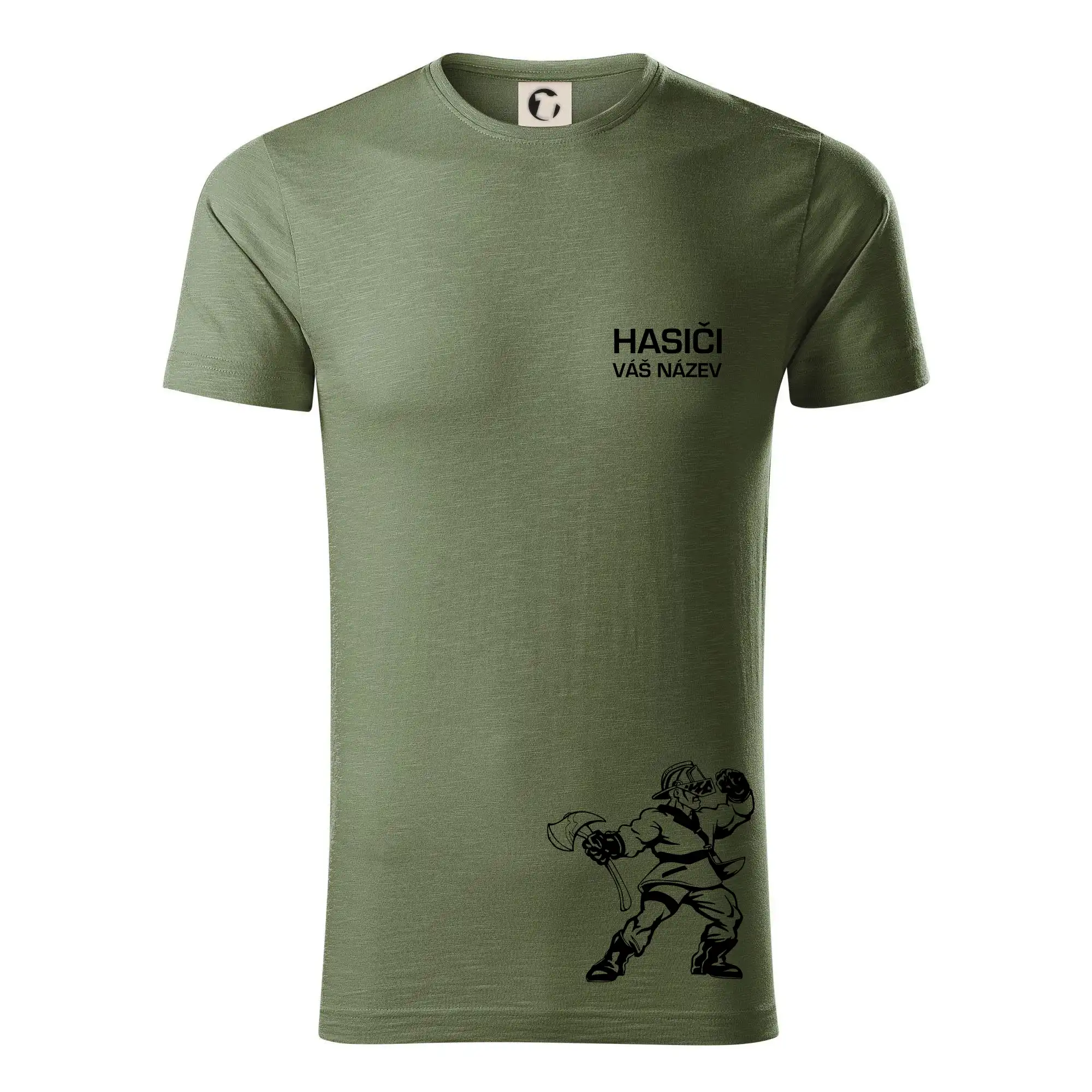 Hledáš super hasičské tričko pro tvůj tým? Co třeba tohle s postavou hasiče doplněné o název tvého týmu.