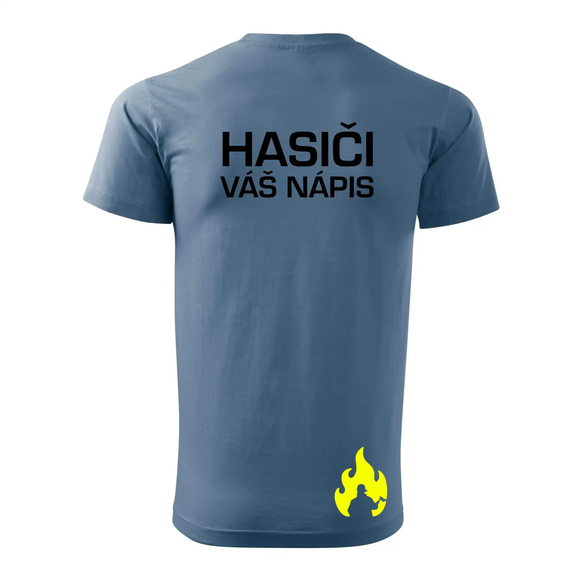 Hasič stojící - nápis hasiči - Velký nápis na zádech - Klasické pánské triko vyšší gramáže