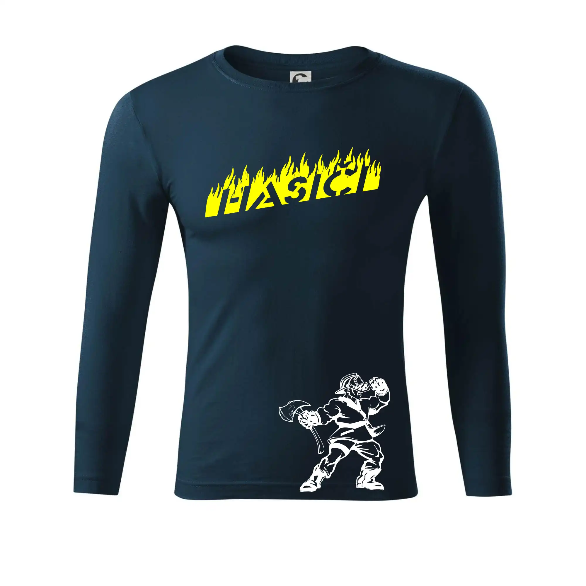 Hasič stojící - nápis hasiči - Velký nápis na zádech