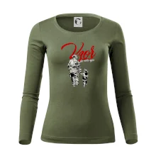 Tolerantnější vypasování dámského střihu, který je vhodný pro všechny typy postavy, ideální délka rukávů a konzervativní výstřih zakončený žebrováním, které skvěle drží tvar.