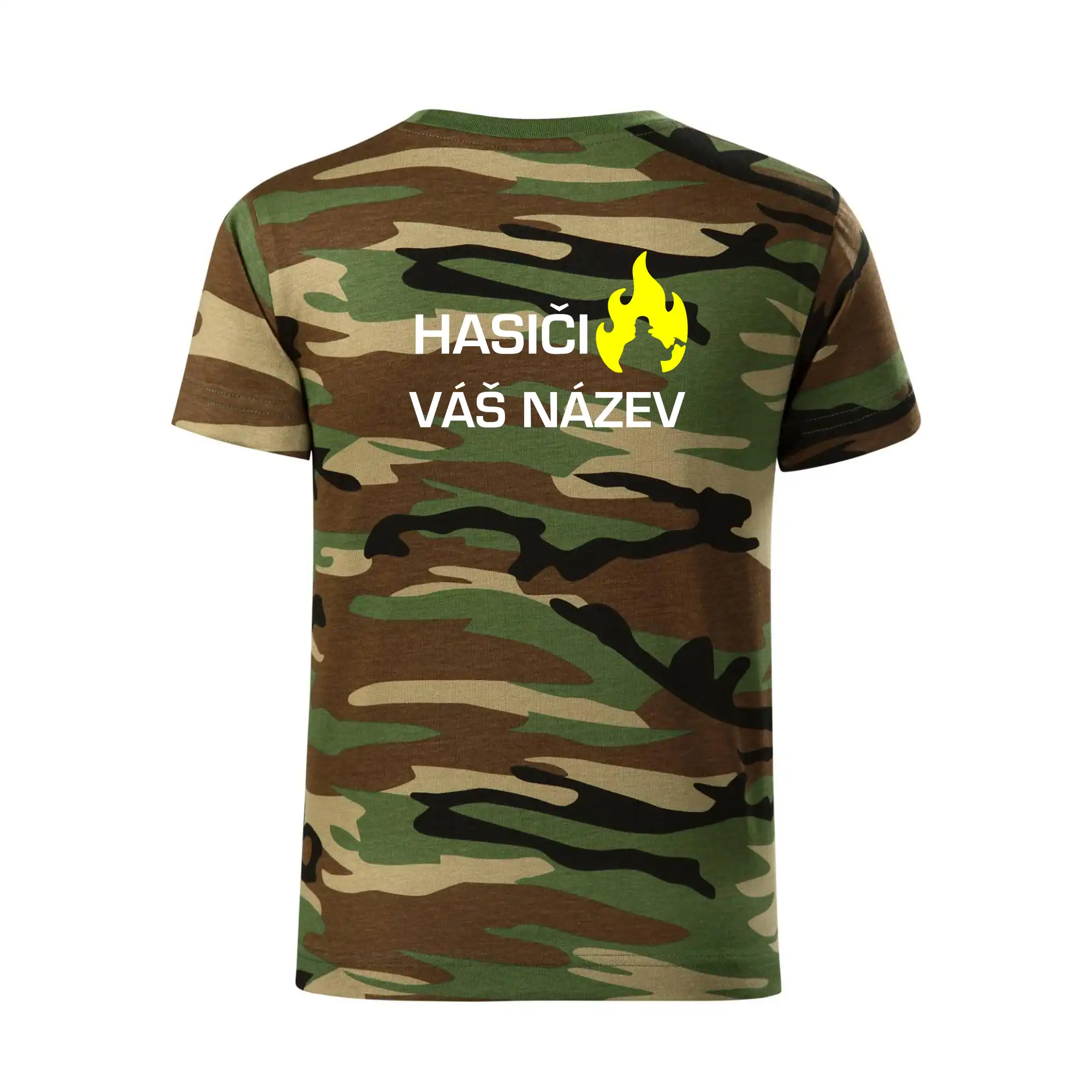 Hasiči - Váš název - FLUO + Reflexní potisk - Dětské maskáčové triko