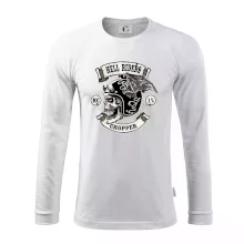 Triko pro motorkáře, na kterém je pekelný jezdec - lebka s helmou, si musí pořídit každý milovník motorek. Chopper s trikem, na kterém je motorkářská lebka a helma je skvělá kombinace na vyjížďku.