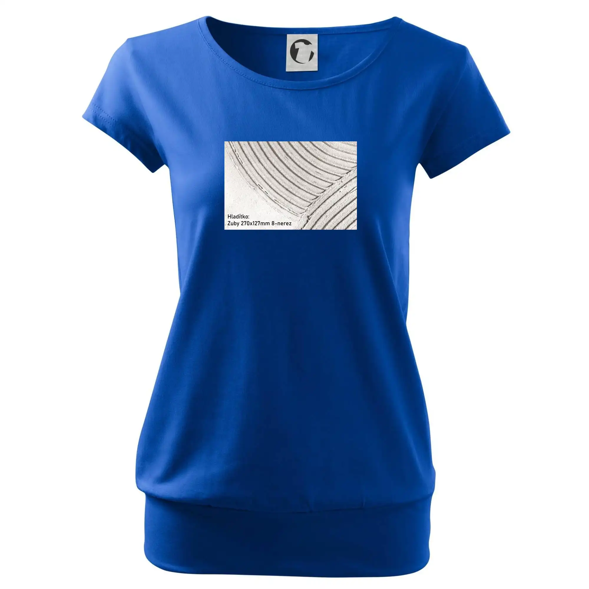 Trendové dámské triko s velmi krátkým rukávem, volnějšího střihu, v dolním kraji všité do širokého lemu. Kulatý průkrčník s úzkým lemem ze shodného materiálu.