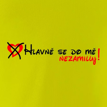 Vtipné triko pro holku s nápisem "Hlavně se do mě nezamiluj". Dárek pro holku.