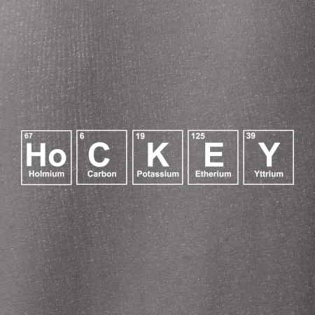 Triko pro hokejistu, který má rád chemii. Z prvků periodické tabulky lze poskládat mnoho. Proč si tedy nevybrat ten správný prvek a na triko si nenatisknout třeba nápis HoCKEY. Trička a mikiny pro všechny hokejisty a milovníky ledu. Hokejové triko s periodickou tabulkou jako vtipný dárek pro hokejistu.
