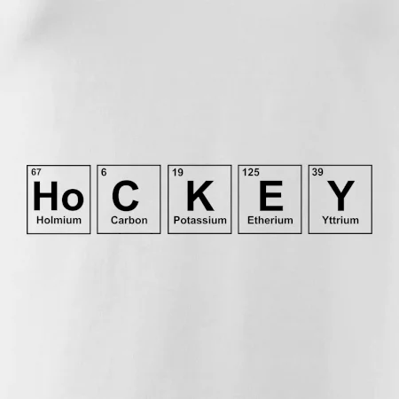 Triko pro hokejistu, který má rád chemii. Z prvků periodické tabulky lze poskládat mnoho. Proč si tedy nevybrat ten správný prvek a na triko si nenatisknout třeba nápis HoCKEY. Trička a mikiny pro všechny hokejisty a milovníky ledu. Hokejové triko s periodickou tabulkou jako vtipný dárek pro hokejistu.