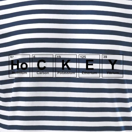 Triko pro hokejistu, který má rád chemii. Z prvků periodické tabulky lze poskládat mnoho. Proč si tedy nevybrat ten správný prvek a na triko si nenatisknout třeba nápis HoCKEY. Trička a mikiny pro všechny hokejisty a milovníky ledu. Hokejové triko s periodickou tabulkou jako vtipný dárek pro hokejistu.