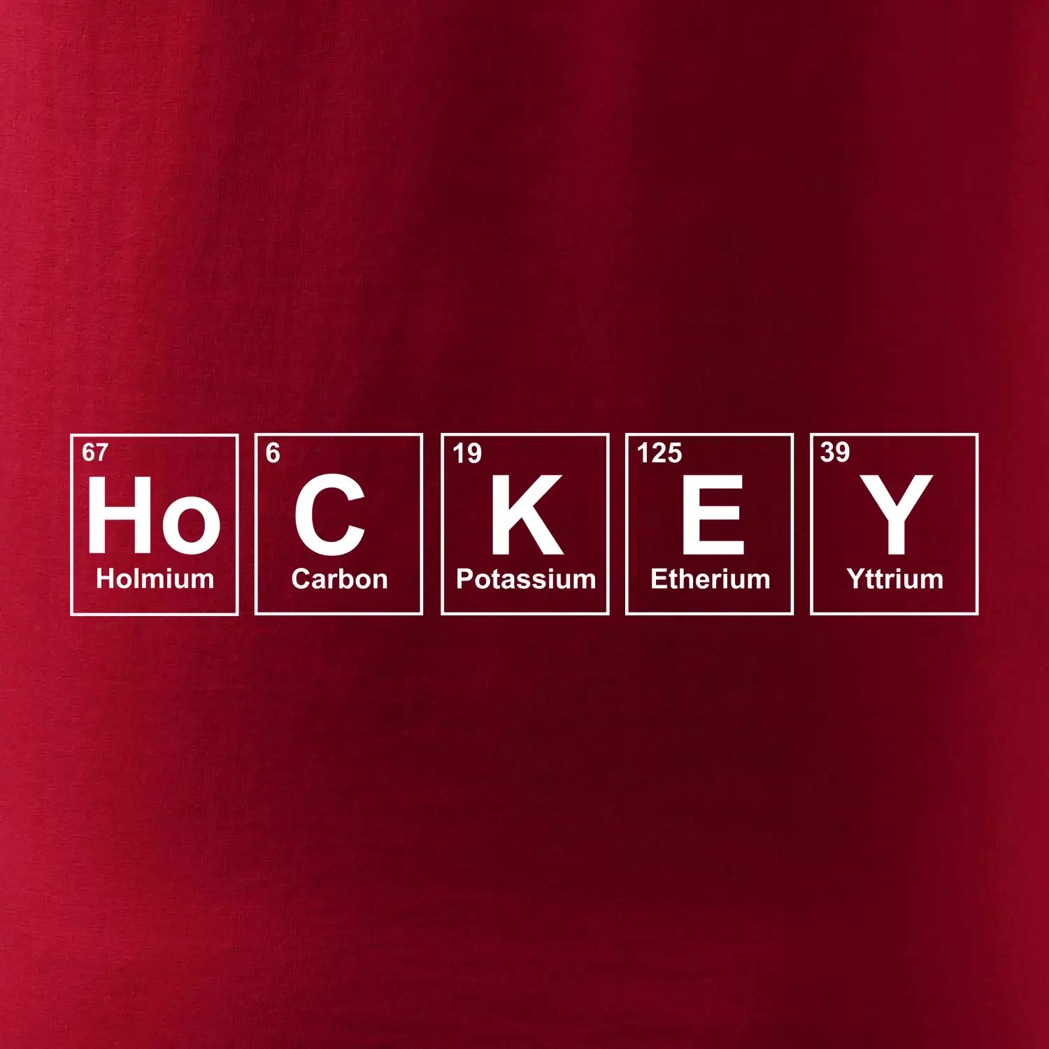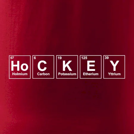 Triko pro hokejistu, který má rád chemii. Z prvků periodické tabulky lze poskládat mnoho. Proč si tedy nevybrat ten správný prvek a na triko si nenatisknout třeba nápis HoCKEY. Trička a mikiny pro všechny hokejisty a milovníky ledu. Hokejové triko s periodickou tabulkou jako vtipný dárek pro hokejistu.