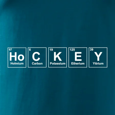 Triko pro hokejistu, který má rád chemii. Z prvků periodické tabulky lze poskládat mnoho. Proč si tedy nevybrat ten správný prvek a na triko si nenatisknout třeba nápis HoCKEY. Trička a mikiny pro všechny hokejisty a milovníky ledu. Hokejové triko s periodickou tabulkou jako vtipný dárek pro hokejistu.