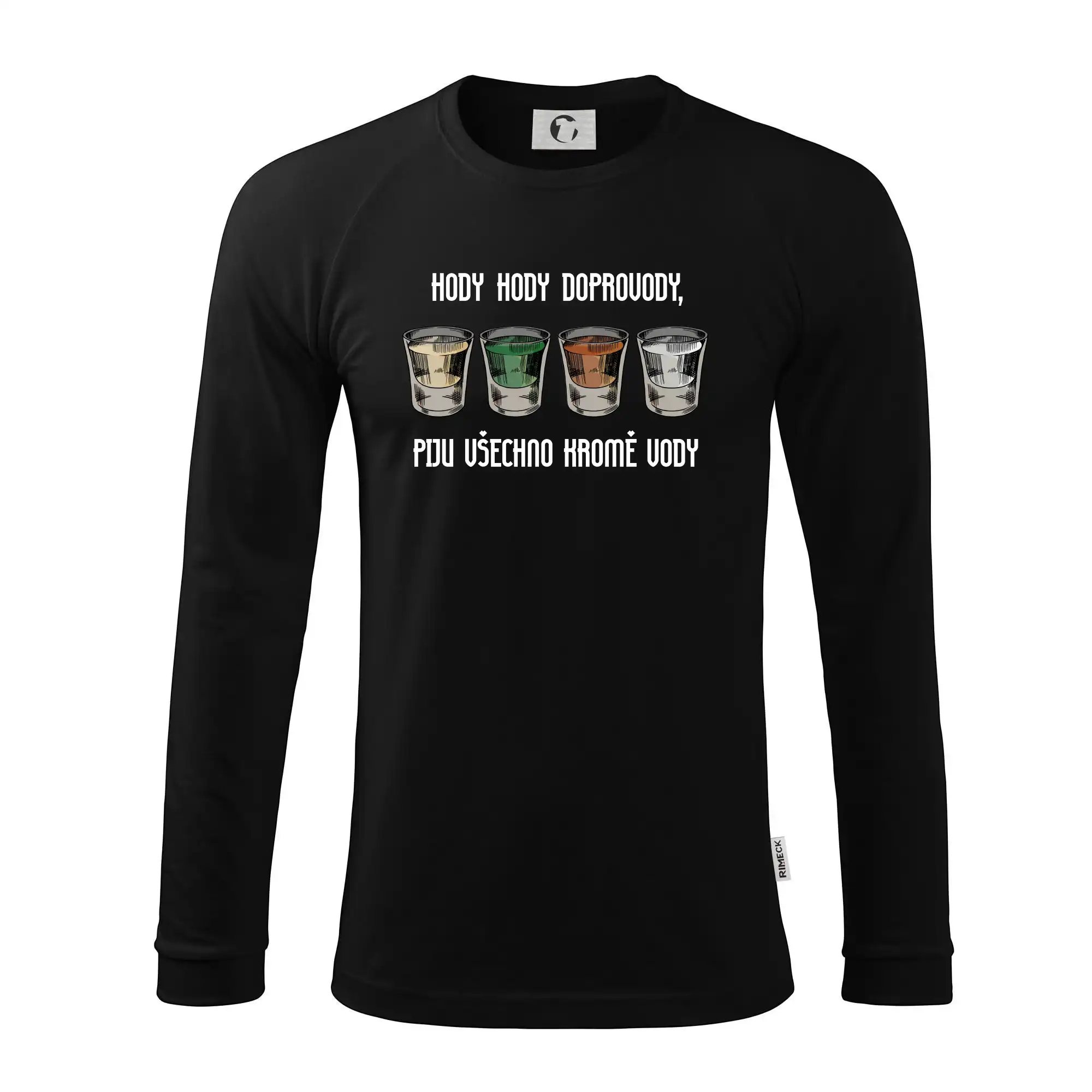Hody hody doprovody, piju všechno kromě vody, dejte panák bílý, ať mám pořád síly, na ten další rum, vypiju vám dům. Tričko na velikonoční koledu.