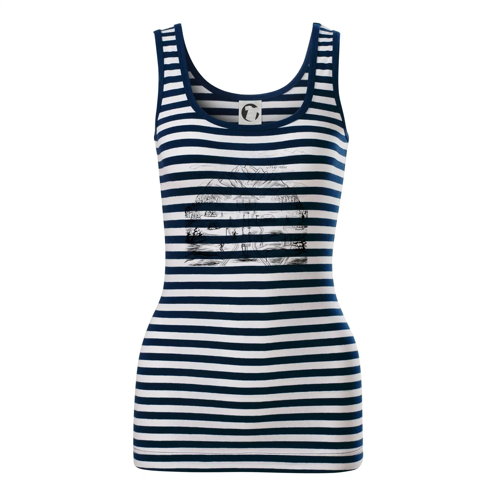 Dámské tílko MALFINI Sailor Top 806 přináší ikonický námořnický vzhled s bílo-modrými pruhy, ideální pro letní dny, výlety nebo ležérní outfity.
