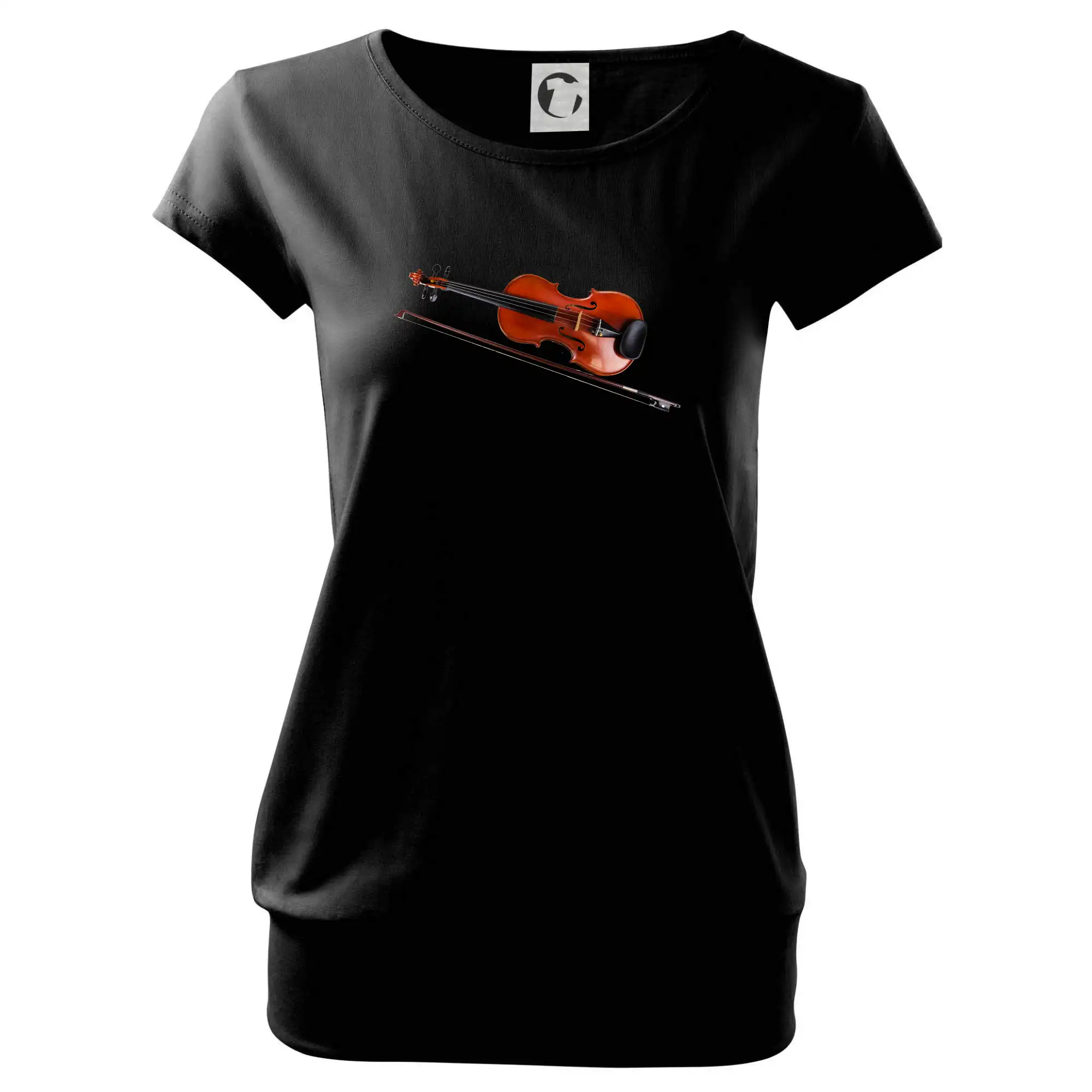Trendové dámské triko s velmi krátkým rukávem, volnějšího střihu, v dolním kraji všité do širokého lemu. Kulatý průkrčník s úzkým lemem ze shodného materiálu.