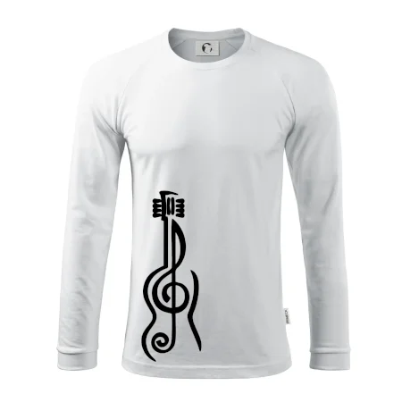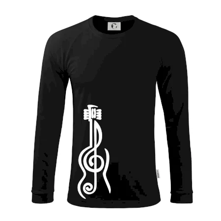 Motivy pro všechny kytaristy a hudebníky! Každý, komu není hudba cizí, by měl doma mít triko, na kterém je houslový klíč, který tvoří kytaru. Hudební triko je vhodný dárek pro kytaristu. Triko s kytarou ti budou ostatní určitě závidět.