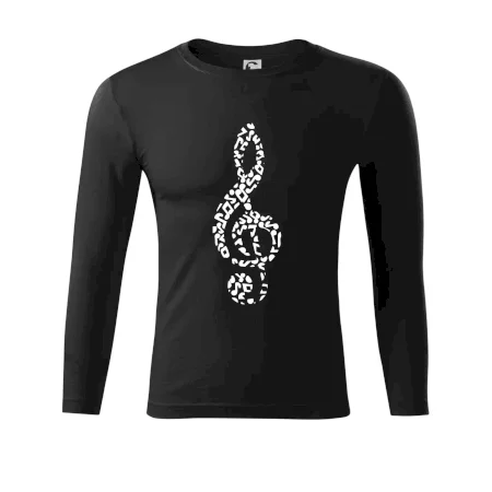 Motivy pro všechny hudebníky! Každý, komu není hudba cizí, by měl doma mít triko, na kterém je houslový klíč poskládaný z jednotlivých not. Hudební triko je vhodný dárek pro všechny muzikanty, kterým nejsou noty cizí.