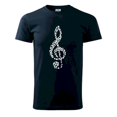 Motivy pro všechny hudebníky! Každý, komu není hudba cizí, by měl doma mít triko, na kterém je houslový klíč poskládaný z jednotlivých not. Hudební triko je vhodný dárek pro všechny muzikanty, kterým nejsou noty cizí.