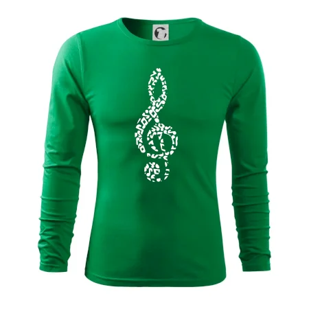 Motivy pro všechny hudebníky! Každý, komu není hudba cizí, by měl doma mít triko, na kterém je houslový klíč poskládaný z jednotlivých not. Hudební triko je vhodný dárek pro všechny muzikanty, kterým nejsou noty cizí.