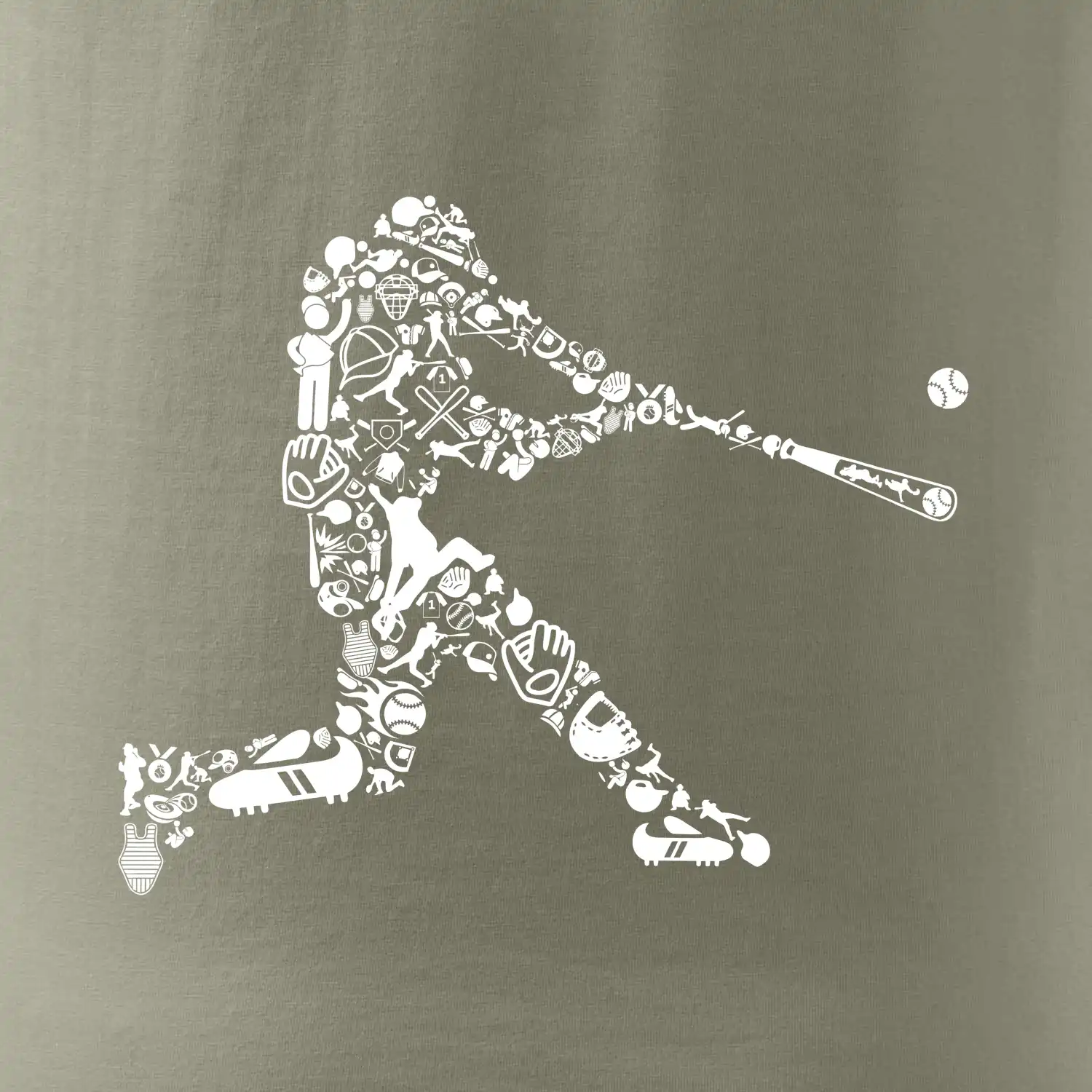 Triko s baseballovým hráčem vytvořeným z typických baseballových ikon, které jsou typické pro tuto hru. Perfektní dárek pro baseballistu, baseballista na triku.