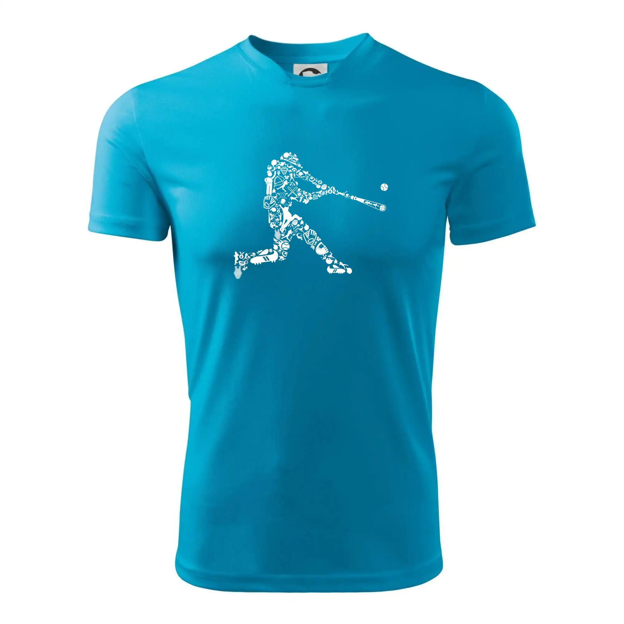 Triko s baseballovým hráčem vytvořeným z typických baseballových ikon, které jsou typické pro tuto hru. Perfektní dárek pro baseballistu, baseballista na triku.