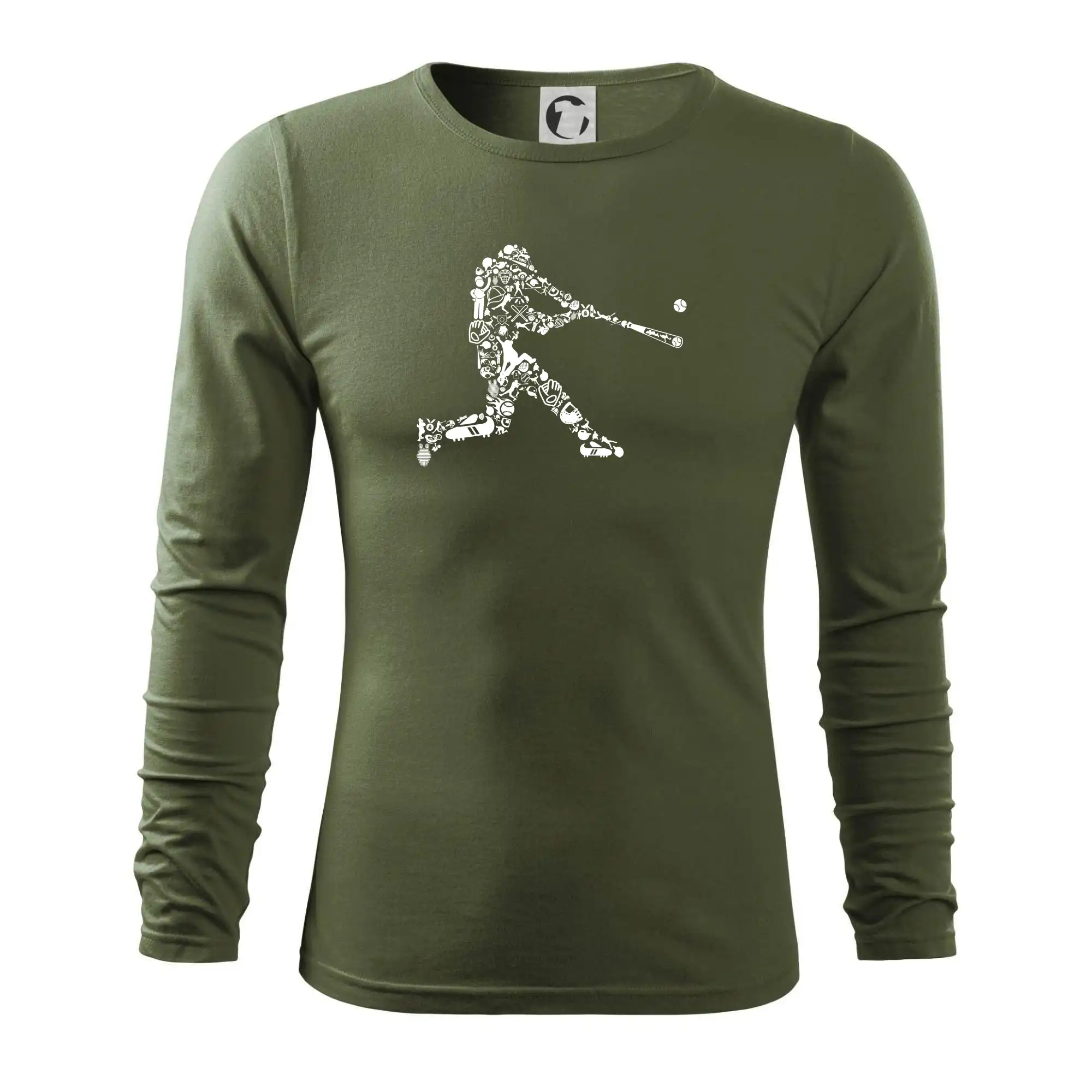 Triko s baseballovým hráčem vytvořeným z typických baseballových ikon, které jsou typické pro tuto hru. Perfektní dárek pro baseballistu, baseballista na triku.