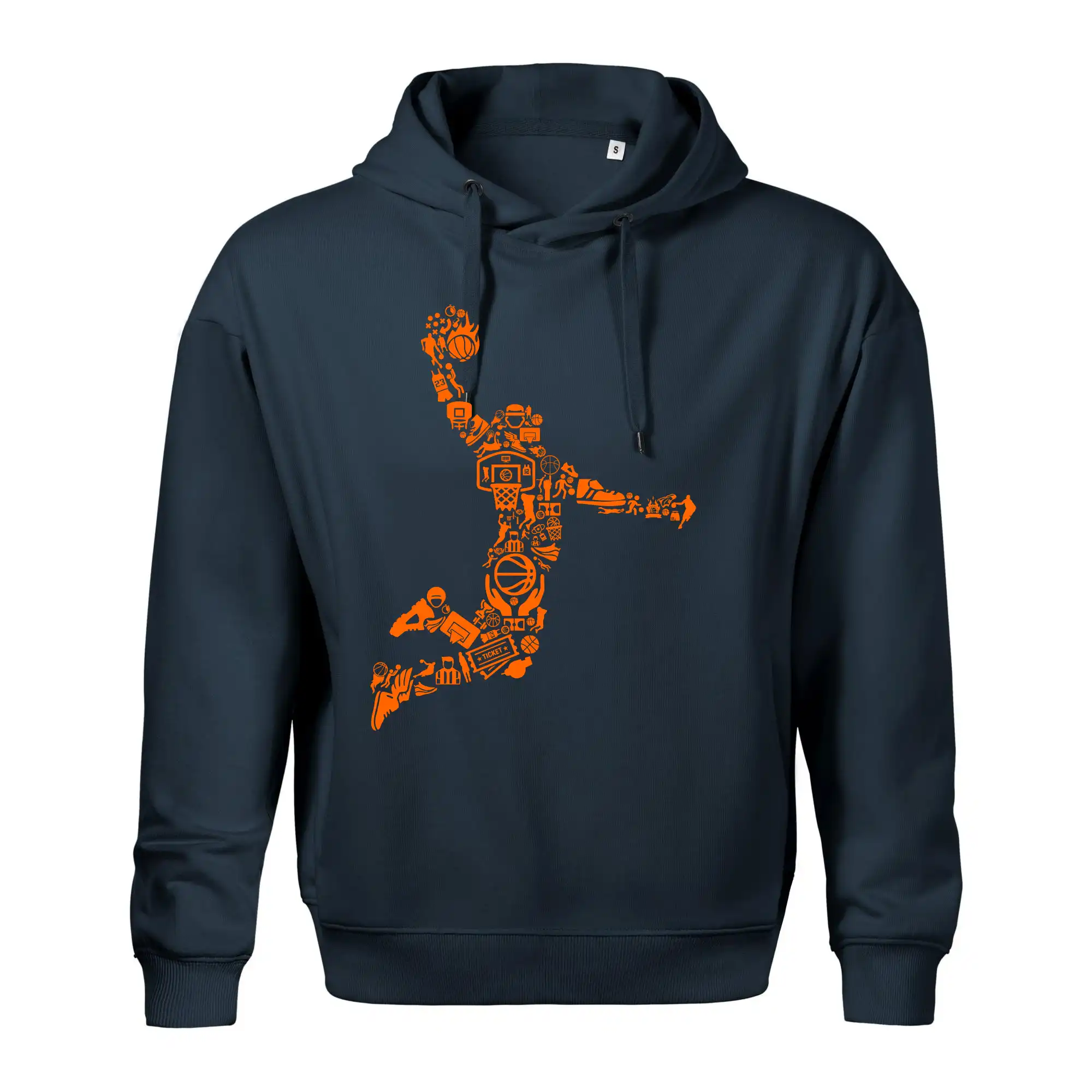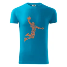 Triko s basketbalovým hráčem vytvořeným z typických basketbalových ikon, které jsou typické pro tuto míčovou hru. Perfektní dárek pro basketbalistu, basketbalista na triku.