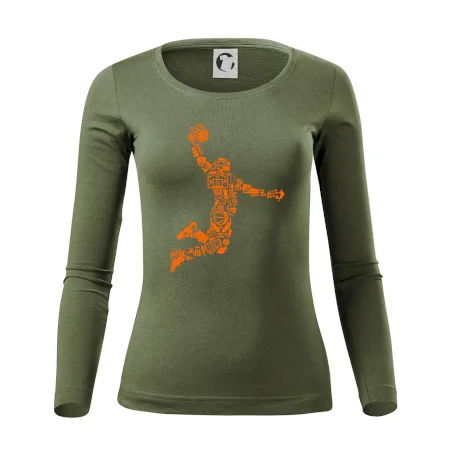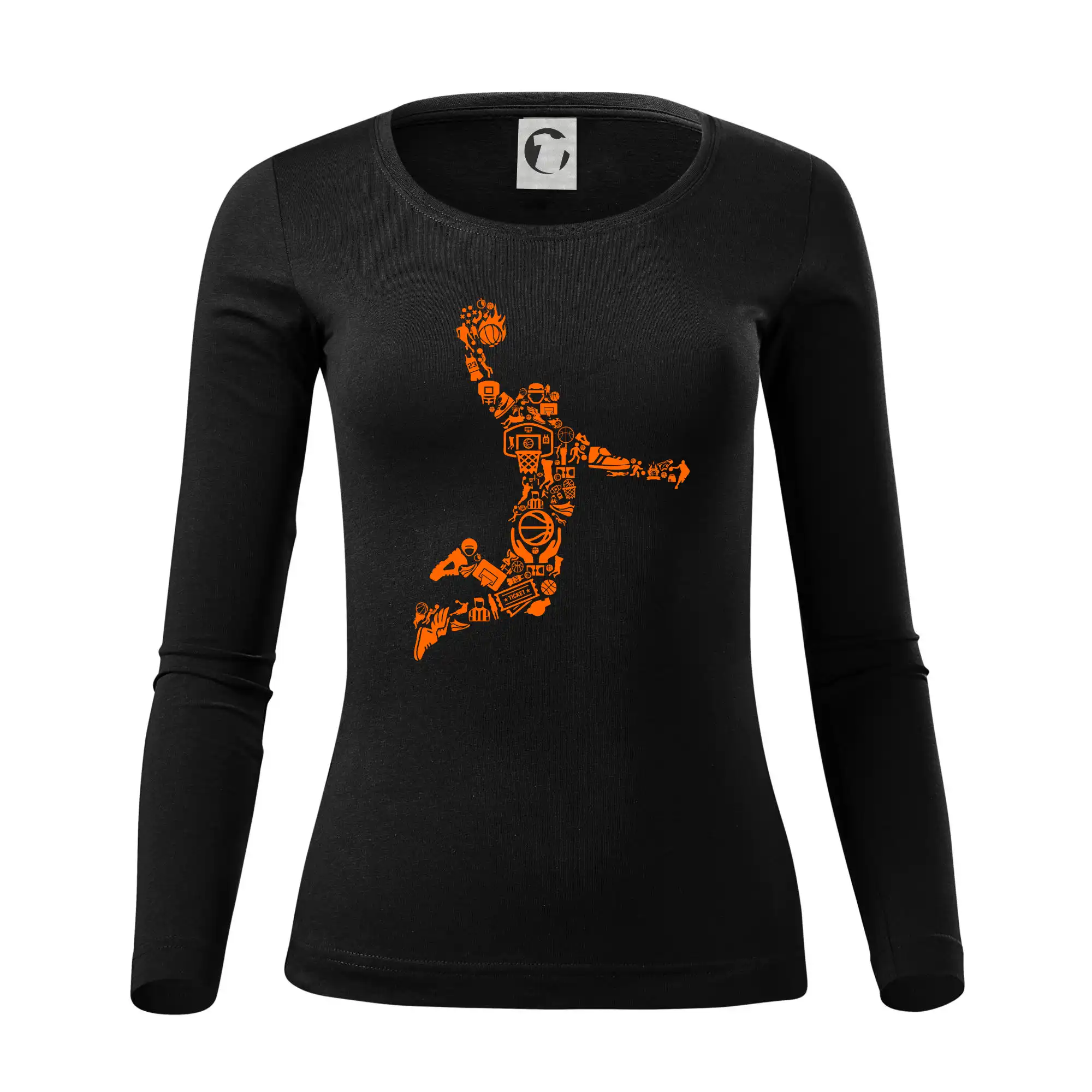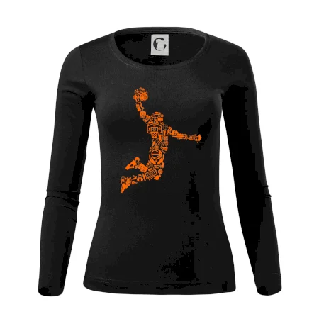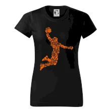 Triko s basketbalovým hráčem vytvořeným z typických basketbalových ikon, které jsou typické pro tuto míčovou hru. Perfektní dárek pro basketbalistu, basketbalista na triku.