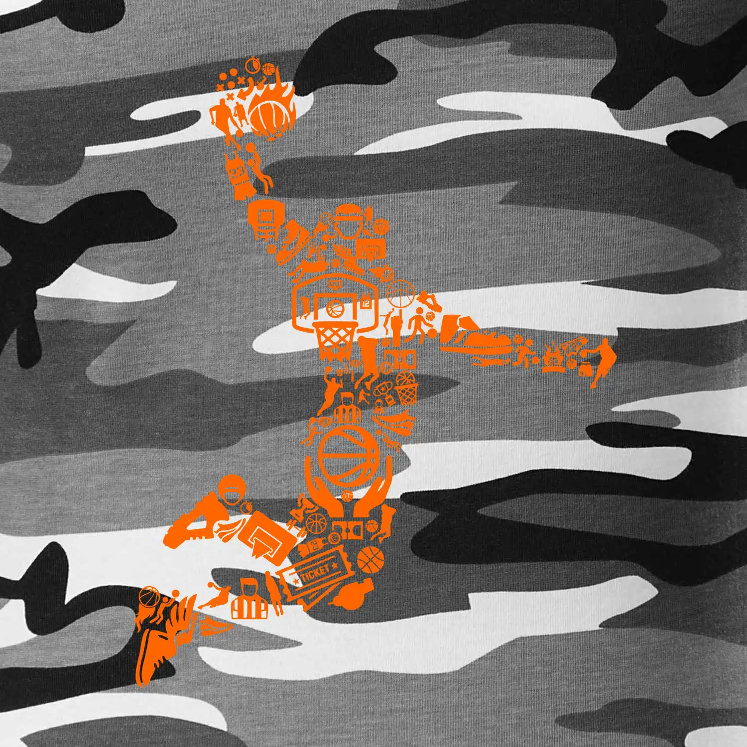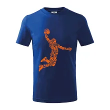 Triko s basketbalovým hráčem vytvořeným z typických basketbalových ikon, které jsou typické pro tuto míčovou hru. Perfektní dárek pro basketbalistu, basketbalista na triku.