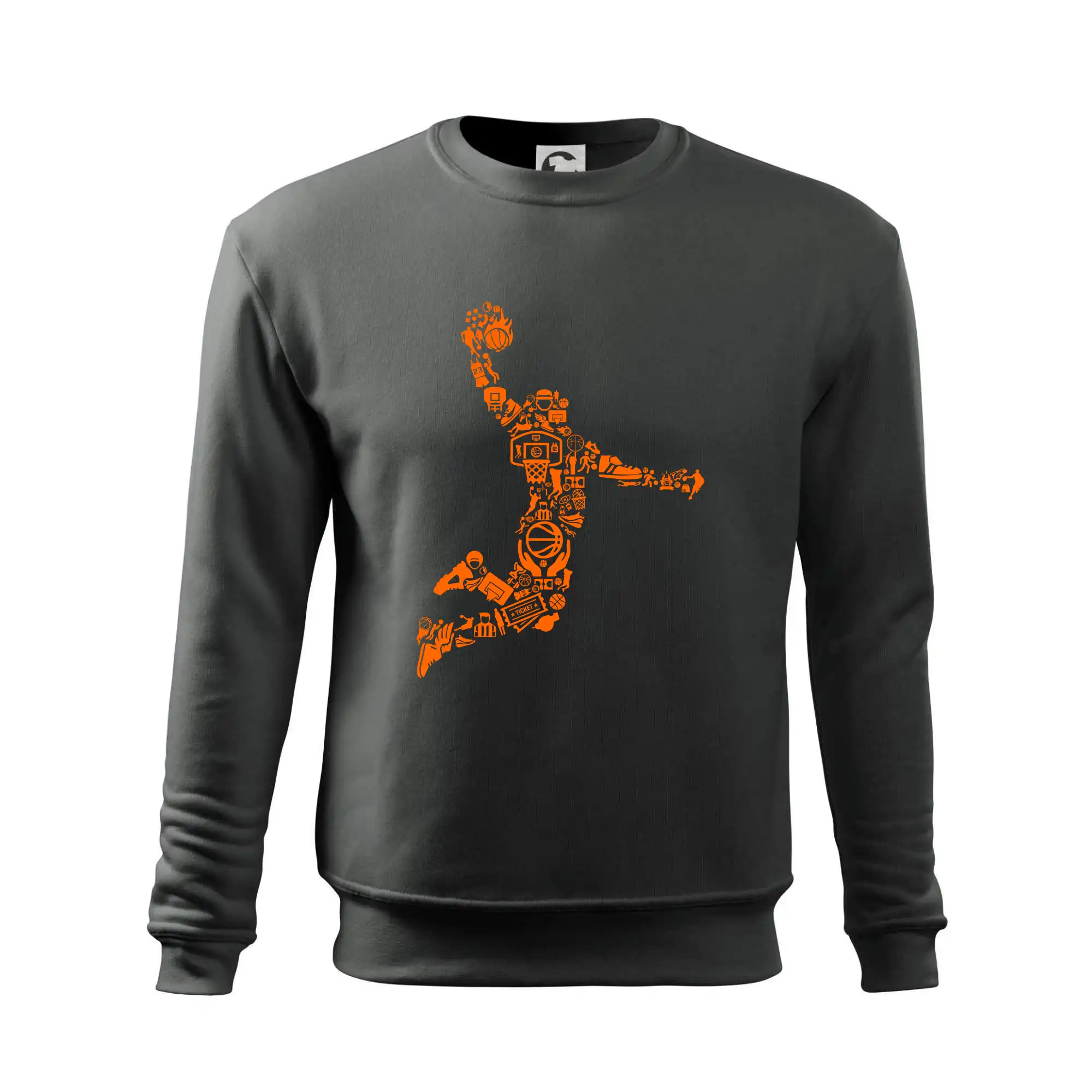 Triko s basketbalovým hráčem vytvořeným z typických basketbalových ikon, které jsou typické pro tuto míčovou hru. Perfektní dárek pro basketbalistu, basketbalista na triku.