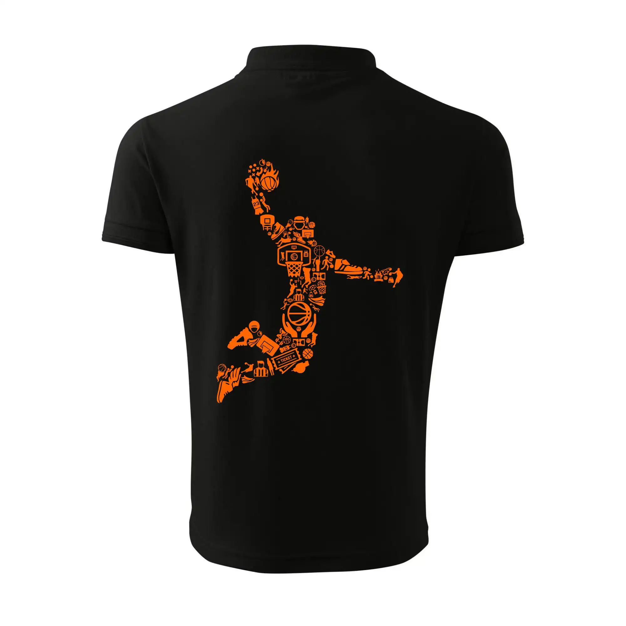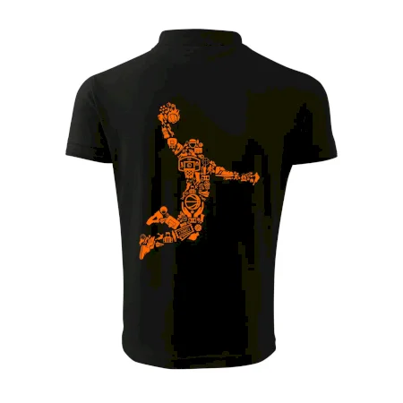 Triko s basketbalovým hráčem vytvořeným z typických basketbalových ikon, které jsou typické pro tuto míčovou hru. Perfektní dárek pro basketbalistu, basketbalista na triku.