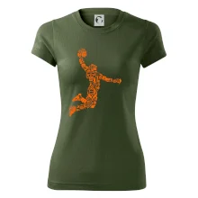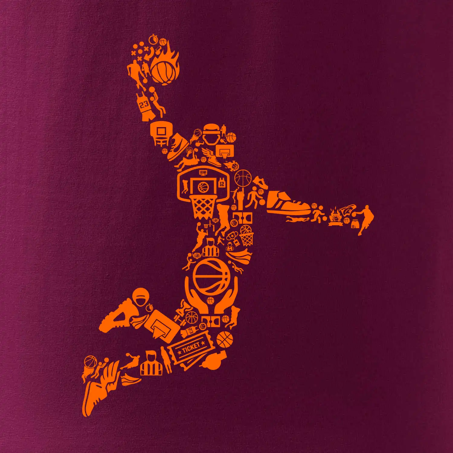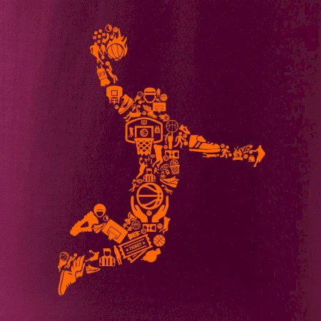 Triko s basketbalovým hráčem vytvořeným z typických basketbalových ikon, které jsou typické pro tuto míčovou hru. Perfektní dárek pro basketbalistu, basketbalista na triku.