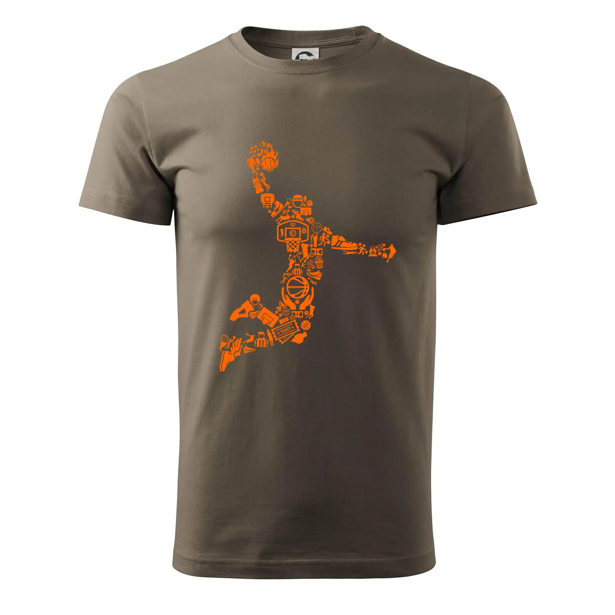 Triko s basketbalovým hráčem vytvořeným z typických basketbalových ikon, které jsou typické pro tuto míčovou hru. Perfektní dárek pro basketbalistu, basketbalista na triku.